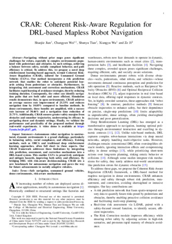 CRAR: coherent risk-aware regulation for DRL-based mapless robot navigation.
