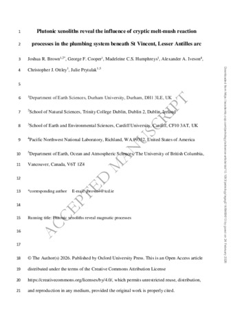 Plutonic xenoliths reveal the influence of cryptic melt-mush reaction processes in the plumbing system beneath St Vincent, Lesser Antilles Arc.