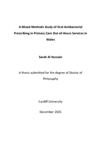 A mixed methods study of oral antibacterial prescribing in primary care out-of-hours services in Wales.