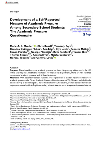 Mueller, Marie A. E., Bonnell, Chris, Ford, Tamsin J., Gutiérrez Muñoz, Carolina, John, Ann, Lewis, Glyn, Meiksin, Rebecca, Murphy, Simon, Ploubidis, George B., Ponsford, Ruth, Rice, Frances ORCID: https://orcid.org/0000-0002-9484-1729, Steare, Thomas, Sullivan, Alice, Sundaram, Neisha, Tilouche, Nerissa and Lewis, Gemma