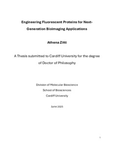 Modern biology and biomedical research have been transformed by advances in optical techniques that enable the sensitive detection and spatially resolved characterization of biomolecules. Among these, fluorescence microscopy has emerged as a pivotal tool for visualizing cellular structures and dynamics, allowing researchers to observe biological systems with high specificity and temporal resolution. Having the ability to selectively label cellular components with fluorophores has revolutionized the fields of cell biology, neurobiology and medical diagnostics. Central to the success of fluorescent-based approaches has been the engineering of fluorescent proteins. From the discovery of the first fluorescent protein, the green fluorescent protein (GFP), to its subsequent optimization that led to a diverse family of genetically encoded fluorescent reporters and later the discovery and development of a repertoire of di>erent coloured proteins, there is a constant need for fluorescent proteins (FPs) with better features to fit di>erent analysis requirements. This thesis explores the engineering of fluorescent proteins (FPs) to enhance their utility in bioimaging and Raman-based spectroscopy. Focusing on mCherry, mNeptune, and superfolder GFP (sfGFP), the work employs site-directed mutagenesis and non-natural amino acid (nnAA) incorporation to modulate fluorescence properties and introduce vibrational signatures detectable by Raman spectroscopy. In Chapter 3, nnAAs—p-cyano-phenylalanine (pCNPhe) and p-ethynylphenylalanine (pCCPhe)—were incorporated into specific residues of mCherry and mNeptune to introduce C≡N and C≡C vibrational bonds. Structural modelling guided residue selection near the chromophore to maximize Raman coupling. Although protein expression was successful, many mutants lacked colour, suggesting disrupted chromophore maturation. Nonetheless, this work laid foundational strategies for genetically encoded Raman-active probes. Chapter 4 details the creation of a novel mCherry variant (mCherryM66C), where cysteine was introduced at position 66 of the chromophore. Spectral analysis showed a 21 nm blue shift in excitation and a 25 nm shift in emission, along with a modest increase in v quantum yield. mCherryM66C displayed dual pH-dependent transitions (pKa = 5.7 and 8.8), consistent with a three-state chromophore model involving sequential protonation. While Raman signal was reduced compared to wild-type mCherry, the variant’s pH sensitivity and environmental responsiveness suggest potential use as a biosensor. Chapter 5 investigates the sfGFP H148S mutant (YuzuFP), developed through molecular dynamics simulations to enhance chromophore hydrogen bonding. Replacing histidine with serine resulted in increased brightness (~1.5-fold), improved absorbance, and significantly enhanced photobleaching resistance (~3-fold). Despite minimal change in pKa, YuzuFP maintained fluorescence more e>ectively across a wide pH range, a>irming its stability and suitability for imaging applications. Collectively, this work demonstrates the e>ectiveness of combining computational design with biochemical engineering to create next-generation FPs with enhanced spectral properties and environmental sensitivity. These engineered variants hold promise for advanced imaging techniques, including multiplexed fluorescence and Raman-based biosensing.