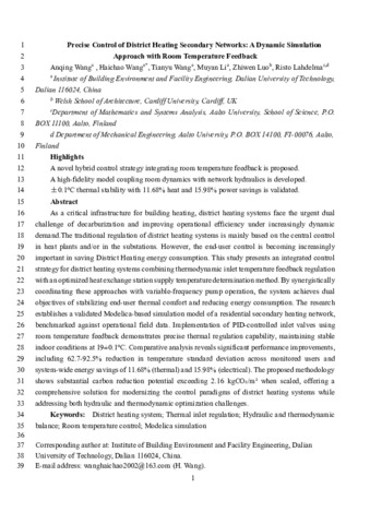 Precise control of district heating secondary networks: a dynamic simulation approach with room temperature feedback.