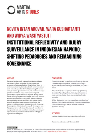 Institutional reflexivity and injury surveillance in Indonesian hapkido: shifting pedagogies and reimagining governance.