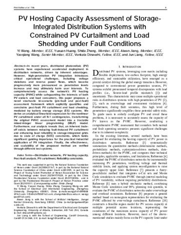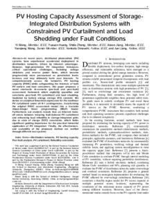 PV hosting capacity assessment of storage-integrated distribution systems with constrained PV curtailment and load shedding under fault conditions.