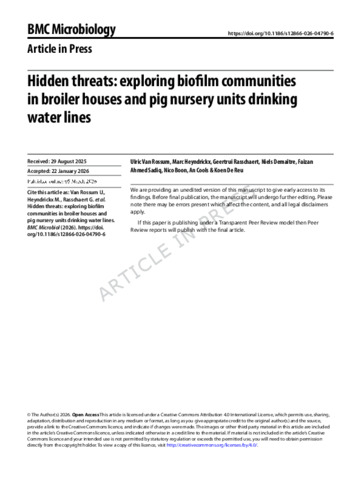 Hidden threats: exploring biofilm communities in broiler houses and pig nursery units drinking water lines.