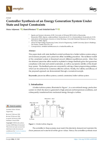 Controller synthesis of an energy generation system under state and input constraints.