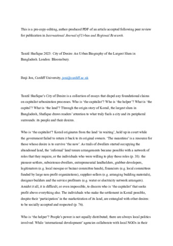 Tanzil Shafique 2025: City of desire: An urban biography of the largest slum in Bangladesh [Book Review].