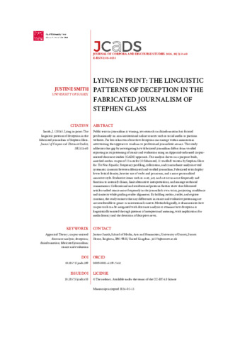 Lying in print. The linguistic patterns of deception in the fabricated journalism of Stephen Glass.