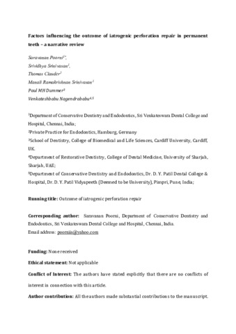 Poorni, Saravanan, Srinivasan, Srividhya, Clauder, Thomas, Srinivasan, Manali Ramakrishnan, Dummer, Paul M. H. ORCID: https://orcid.org/0000-0002-0726-7467 and Nagendrababu, Venkateshbabu