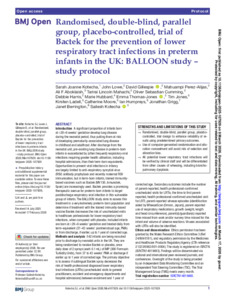 Randomised, double-blind, parallel group, placebo-controlled, trial of Bactek for the prevention of lower respiratory tract infections in preterm infants in the UK: BALLOON study - study protocol.