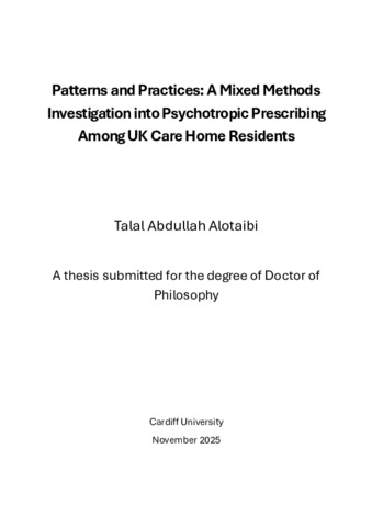 Patterns and practices: A mixed methods investigation into psychotropic prescribing among UK care home residents.
