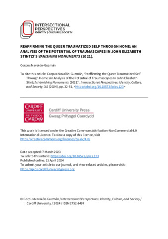 Reaffirming the queer traumatized self through home: an analysis of the potential of traumascapes in John Elizabeth Stintzi’s Vanishing Monuments (2021).