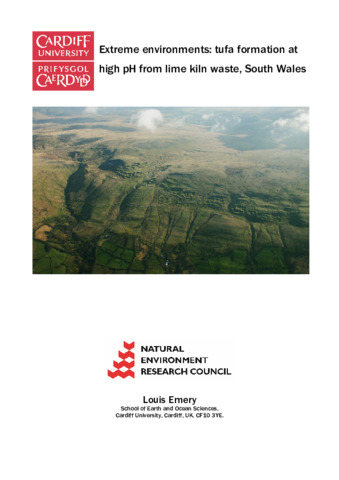 Invasive tufa deposits on Foel Fawr, South Wales are forming from lime kiln waste deposited from the 18th century until the 1950s. The tufa deposits are unusual in their anthropogenic origin and form the largest site of this type in the UK. At emergence pH is extreme (>11) and this consequently generates significant pressure on organisms living in and around the system. Morphologically, the calcium carbonate tufa deposits are similar to those formed in other extreme environments (e.g. hot springs, caves), forming many of the same features (e.g. terraces, rimpools, pisoids, stalactites). By identifying and mapping tufa facies at Foel Fawr, the spatial distribution of these facies has been directly compared to these potentially analogous environments. Analysis of the fabrics associated with each facies highlights the importance of physico-chemical precipitation in the system; proximal facies are dominated by abiotic fabrics, while distal and marginal facies show an increasing degree of biological influence. This process is comparable to the partitioning of fabrics and facies observed in hot spring systems, however, the role of microbes in precipitation is apparently less important on Foel Fawr. The present day extreme chemistry of the site selectively excludes organisms and generates a partitioning of biology. Hydrochemical monitoring of the site reveals that the extreme pH of the system is in decline. The recession of the extreme hydrochemistry is confirmed by colonisation of previously excluded organisms and allowed the physical decay of the site. Fabrics preserved within the deposits support the suggestion that the extreme environments were previously much more widespread.