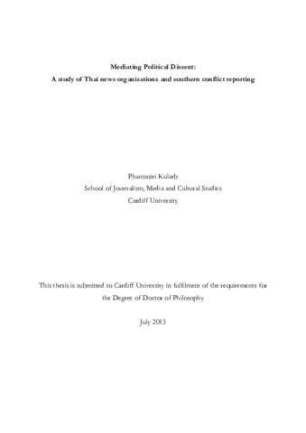 Mediating political dissent: a study of Thai news organisations and southern conflict reporting.