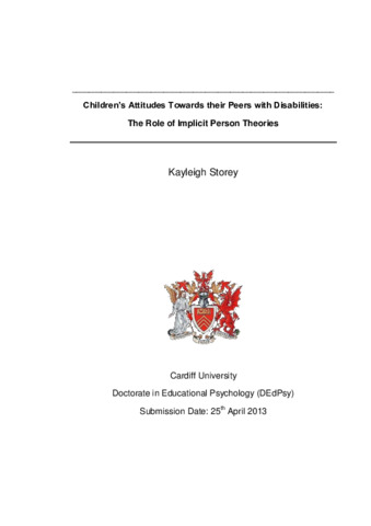 Previous research has consistently shown that children tend to hold negative attitudes toward their peers with disabilities when compared to those without disabilities (Diamond & Huang, 2005; Nowicki & Sandieson, 2002). What is more, children’s attitudes towards those with physical disabilities are more positive than their attitudes towards those with learning disabilities (Nowicki & Sandieson, 2002). Developmental factors such as age, gender, and previous experience with others with disabilities have been explored as potential moderating variables, however, findings have been inconclusive. This paper is the first to explore the role of implicit person theories (IPTs) in moderating children’s of attitudes towards their peers with disabilities. IPTs refer to the belief that attributes are either fixed and not subject to change (an entity theory) or malleable and changeable with effort (an incremental theory) (Dweck, 2000). Holding different IPTs has been associated with having differences in social perception (Dweck & Molden, 2008), which may affect children’s attitudes. The current research has two broad aims; to replicate previous research findings of children’s attitudes towards their peers with physical and learning disabilities as described above, and to explore the role of IPTs in moderating these attitudes. This paper comprises of two parts. The first is a literature review which aims to critically discuss and synthesise literature from the two relevant fields of research; that which investigates children’s attitudes to their peers with disabilities, and research relating to IPTs. The second part is a research paper giving details of the research that was carried out.