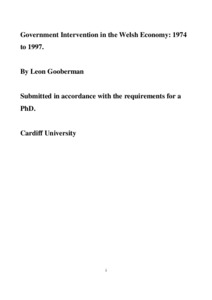 This thesis provides a description and analysis of government intervention in the Welsh economy between 1974 and 1997. During this period, Wales underwent rapid and far-reaching economic upheaval on such a massive scale that few avoided its impact. The scale of these changes was dramatic, as was the intensity of attempts to deal with their consequences. Wales acted as a laboratory for the development of approaches to government intervention in the economy. This thesis defines government intervention in the Welsh economy, before identifying activity, expenditure and (where possible) outputs across categories including land reclamation, factory construction, attraction of foreign direct investment, urban renewal, business support and the provision of grants and subsidies. It also places such interventions in their political and economic contexts, highlighting the dynamics that evolved between policies developed in Cardiff and London. By doing this, it asks and answers three questions relating to the changing dynamics of government intervention; namely, what was done, why was it done and was it effective? The thesis draws on primary sources including interviews with politicians and those formerly holding senior positions within governmental organisations, records held by the National Archives, personal and organisational archives held by the National Library of Wales, records held by other archives, newspapers and government publications. Secondary texts are discussed and drawn upon, with this study adding a history of government intervention in the Welsh economy to the literature for the first time.