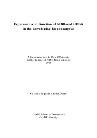 Expression and function of APRIL and GDF-5 in the developing hippocampus.