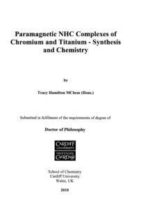 Paramagnetic NHC complexes of chromium and titanium, synthesis and chemistry.