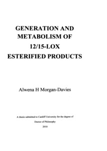 12/15-LOX is suspected to be involved in inflammatory disorders such as atherosclerosis but the exact mechanism of its action is unclear. Novel esterified products called 12- and 15- H(p)ETE-PEs were recently identified in murine macrophages and human monocytes respectively, which may at least partially account for the effects of 12/15-LOX (Maskrey et al, 2007). In this thesis the generation and metabolism of 12- and 15-H(p)ETE-PEs was characterised in murine macrophages and human monocytes. 12- and 15-H(p)ETE-PEs increased by 15 minutes following cell activation and were metabolised by three hours. However, endogenous 12- and 15-HETE-PEs increased then remained stable. Novel lipids believed to be precursors of 15-HETE-PEs, called 15-KETE-PEs, were identified in human monocytes. 15-KETE-PEs increased by 15 minutes and were metabolised by three hours and may therefore account for the temporal generation pattern of 15-H(p)ETE-PEs. 14C radiolabeled products of 15-LOX were generated and characterised in human monocytes. Detection of the 14C radiolabel in activated monocytes suggested that products of 15-LOX may form Michael adducts with proteins by three hours post activation. This may account for the 15-KETE-PE decrease in time-course samples. A method was developed to synthesise 15-H(p)ETE-PE standards, to use in a new assay for their direct quantification following MS analysis. The 15-HETE-PE standard was also used to investigate its pro- versus anti-inflammatory effect on LPS-stimulated human monocytes. 15- HETE-PE down-regulated IL-ip, TNF-a, IL-6 and G-CSF generation, suggesting that products of 15-LOX are anti-inflammatory in human monocytes. 12-H(p)ETE-PEs were externalised in activated WT macrophages, which may be important for cell-cell interactions and re-structuring the cell membrane. EM analysis indicated that 12/15-LOX"7" macrophages have a lysosomal storage disease, symptoms included the presence of lysosomal storage bodies, vacuoles and damaged mitochondria. This may be caused by detected raised levels of PE, PS, PG and PI phospholipids and cholesterol esters in 12/15-LOX"7" macrophages. The data described herein provides a platform to further investigate the function of esterified products generated by 15- and 12/15-LOX.