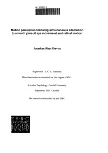 This study employed adaptation paradigms to explore visual motion processing during smooth pursuit eye movement. Two classes of model, classical models and reference signal models, employ estimates of retinal motion and pursuit to estimate head-centred world motion. The pursuit estimate in classical models is purely extra-retinal. In reference signal models the pursuit estimate is additionally modulated by retinal feedback. Chapters 2 and 3 investigated the motion aftereffect (MAE) following adaptation to simultaneous retinal motion and smooth pursuit. In chapter 2 adaptations to either horizontal retinal motion or vertical smooth pursuit respectively resulted in retinal or extra-retinal MAE. Simultaneous orthogonal adaptation to both motions resulted in a unidirectional MAE that bisected the individual MAE directions. Adaptation to a head-centred motion signal (perceived direction) was not supported by the recorded directions for adapting motion and resulting MAE. An explanation employing separate lower level adaptations was favoured. Chapters 3 and 4 examined motion perception following collinear motion adaptation. Additionally, the retinotopic nature of retinal motion adaptation was exploited to limit the effects of retinal sensor adaptation during the test phase. The two classes of model then make differing predictions: Reference signal models predict a pursuit estimate that is modulated by retinal motion, whilst classical models do not. In chapter 3 varying the background motion during adaptation did alter the physical eye movement. However, the properties of the resulting MAE were not modulated by retinal feedback and a classical model was supported. Chapter 4 used a moving test to quantify the perceived stability of a background during smooth pursuit; using a two alternative forced choice paradigm and staircase procedure. Either a phantom velocity aftereffect or a modified reference signal model was suggested as modulating the Filehne illusion in Experiment 6. Two control experiments failed to find evidence for phantom adaptation. Experiment 9 demonstrated a potential retinotopic location bias for background motion when applying a reference signal model, background motion above the test area did not alter perceived stability judgments.