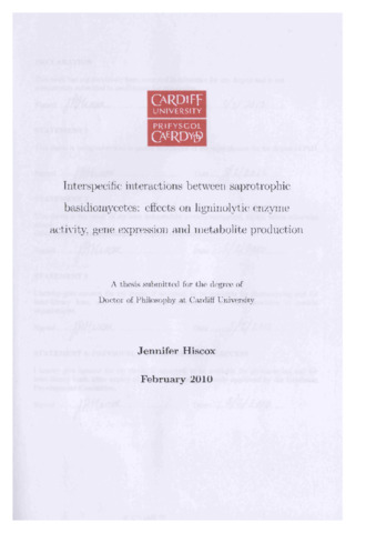 Interspecific interactions between saprotrophic basidiomycetes: effects on ligninolytic enzyme activity, gene expression and metabolite production.