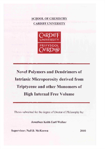 The research described in this thesis is largely focused on monomers derived from the triptycene moiety, and their potential to form polymers of intrinsic microporosity (PIMs), organic molecules of intrinsic microporosity (OMIMs) and dendrimers of intrinsic microporosity (DIMs). Triptycene is of particular interest here due to its high internal molecular free volume (IMFV) and previously reported success in the formation of microporous materials - triptycene is in fact the basis of the most microporous PIM reported to date, and the basis of the only reported example of an amorphous molecular microporous material. The work later extends to incorporate other presumed high IMFV moieties based on spirobifluorene and propellane. The research begins by focusing on the synthesis of potentially soluble polymers. They are of interest due to their processability, which when coupled with microporosity, can potentially yield permeable membranes suitable for selective gas separation. There has been much research into PIMs and their corresponding membranes, with particular interest surrounding PIM-1, a polymer formed between a spirobisindane based monomer, and 2,3,5,6-tetrafluoroterephthalonitrile.1 The same nucleophilic aromatic substitution reaction (SNAr) as is used to make PIM-1 is employed throughout this thesis for the formation of final products. The second section of this project focused on the synthesis of network polymers based around triptycene, introducing bitriptycenes, triptycene side groups, and unsymmetrical triptycenes with new functional groups, the main focus on increased surface area. Although highly microporous materials were prepared, no enhancement over previously obtained triptycene polymers was obtained. The third section of the thesis focuses on the synthesis of novel microporous materials termed Organic Molecules of Intrinsic Microporosity (OMIMs) and Dendrimers of Intrinsic Microporosity (DIMs). These are discrete molecules lacking any long range order that cannot pack space efficiently due to their rigid structures, composed of monomer subunits with high IMFV. All materials were analysed for their apparent BET surface areas (N<sub>2</sub> adsorption at 77 K), which were in the range 0-700 m2 g"1.