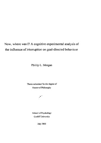 Now, where was I?: a cognitive experimental analysis of the influence of interruption on goal-directed behaviour.