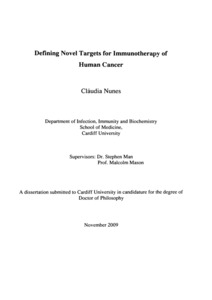 Defining novel targets for immunotheraphy of human cancer.