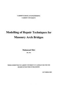 Small scale centrifuge models were used to study the behaviour of arches repaired using different techniques. The models under test were 1/12th scale replicas of a 6 metre single span three ring arch. Two types of arch geometry, with span/rise of 4 and 2, were studied as a shallow and deep arch geometry. The models were tested in a centrifuge under a steady equivalent gravity of 12g. Two types of 2-D and 3-D arch models were studied which had the same geometry but different in the addition of spandrel walls. The 3-D models were built with spandrel walls but without any wing walls or parapet. Both 2-D and 3-D arch models were tested under rolling and failure loads. The models were usually tested with fourteen passes of a rolling load and then up to the observation of first signs of failure to enable them to be suitable for applying a repair method. The repaired models were tested using the same procedure but up to the full failure load. To understand the behaviour of the arch models under unsymmetrical loads different roller weights were applied at different positions. The arch deflection and the soil/masonry interaction in arch extrados were measured in all the tests and compared with each other. Plastic mesh reinforcement, stitching, and concrete slab on top of the soil backfill were applied as repair methods to the 2-D arch models. A review of the results has shown an increase in arch stiffness, decrease in deflections and a significant improvement in the ultimate load carrying capacity. A significant effect on the pressure distribution on the arch barrel was observed due to the application of the concrete slab on top of the backfill. Stitching of arch barrel and the barrel to the spandrels, applying partial saddle concrete and strengthening of spandrel wall using reinforced concrete were tested in the 3-D arch models. The results showed improvements in the stiffness and ultimate arch load carrying capacity due to these repair techniques. The results provide a valuable data base for validation of numerical models and an initial attempt to use them with a commercial finite element program is included.