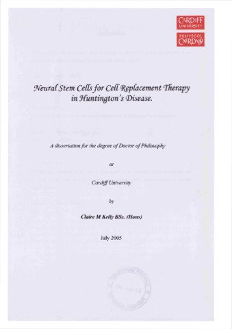Neural stem cells for cell replacement therapy in Huntington's disease.