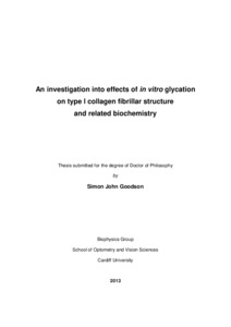 An investigation into effects of in vitro glycation on type I collagen fibrillar structure and related biochemistry.