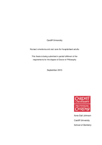 | Uncontrolled Keywords: | Oral care for hospitalised adults; Nurses emotions and oral care; Oral health |