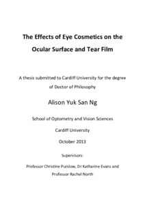 Eye cosmetics usage in the UK is commonplace. Despite its popularity, there is a lack of published literature exploring the ocular effects of eye cosmetic usage. The influence of eye cosmetics upon symptoms of dry eye and contact lens discomfort has been suggested but these links have not been established. Consequently, this thesis aims to establish any link between ocular comfort with eye cosmetic usage. This was achieved by conducting a survey which showed the use of eye cosmetics, particularly eyeliner, significantly reduced ocular comfort. Amongst cosmetic users, contact lens wearers did not experience significantly reduced ocular comfort compared to non-contact lens wearers. Eye care practitioners often report observations of eye cosmetics contaminating the tear film, even when the products are applied to peri-ocular skin, although these reports are anecdotal. This thesis demonstrates that cosmetic pencil eyeliner migrates most readily and maximally contaminates the tear film when applied along the inner lid margin. After two hours post-application, contamination of the tear film from pencil eyeliner was negligible. This finding led to a subsequent study which examined the clinical and immunological responses of the ocular surface following migration of cosmetic pencil eyeliner. Clinically, eyeliner pencil did not appear to induce signs of ocular surface inflammation. However seven consecutive days of eyeliner application along the inner lid margin increased lipid layer thickness and dry eye symptoms compared to when the eyeliner was applied to peri-ocular eyelid skin. Subclinical signs of ocular surface inflammation were investigated by examining the concentration of inflammatory cytokines, IL-6 and IL-8, in tear fluid. A small reduction of cytokine concentration was exhibited after one day of eyeliner use although concentrations returned to near baseline levels after seven days of use. In conclusion, pencil eyeliner is safe to use and does not appear to induce clinical or subclinical signs of inflammation when used for up to seven days consecutively. The causes of increased dry eye symptoms are undetermined and the longer term effects of eyeliner application remain unknown.
