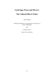 | Clayton, Alice Charlotte 2013. Good eggs, fixers and movers: the cultural elite in Wales. PhD Thesis, Cardiff University. |
